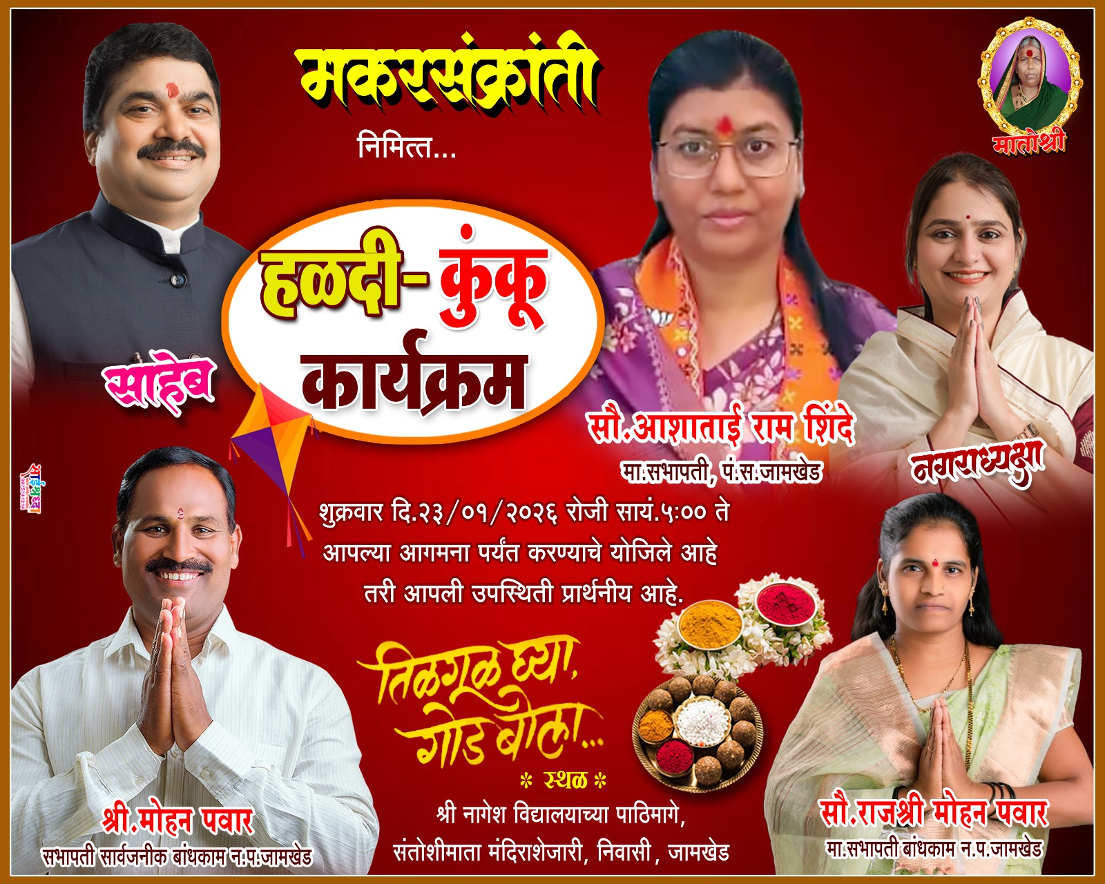 या कार्यक्रमाचे आयोजन राजश्री पवार, शीतल पवार, कांताबाई गायकवाड व अर्चना पवार यांनी केले असून सर्व महिला भगिनींनी मोठ्या संख्येने उपस्थित राहावे, असे आवाहन आयोजकांच्या वतीने करण्यात आले आहे.