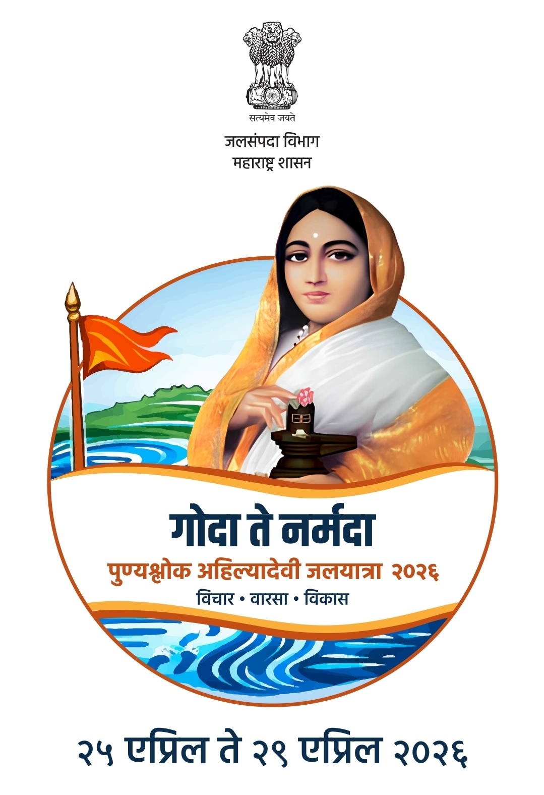 समृद्ध नगर न्यूज नेटवर्क – अहिल्यादेवी होळकर यांच्या 300 व्या जयंती निमित्त आयोजन*मुंबई, दि. 13 : “गोदा ते नर्मदा” या पुण्यश्लोक अहिल्यादेवी जलयात्रा 2026 चा शुभारंभ त्र्यंबकेश्वर आणि चोंडी येथून कार्यक्रमाद्वारे केला जाईल, असे मुख्यमंत्री देवेंद्र फडणवीस यांनी सांगितले. अहिल्यादेवी होळकर यांच्या 300 व्या जयंतीनिमित्त त्यांचे कार्य, विचार व वारसा नागरिकांपर्यंत पोहचविण्यासाठी 25 ते 29 एप्रिल 2026 या कालावधीत या जलयात्रेचे आयोजन करण्यात येणार आहे.